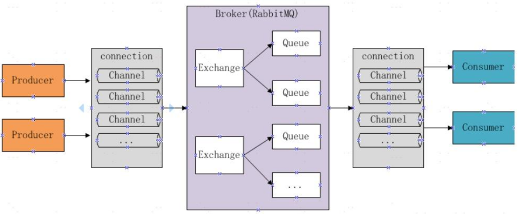 - Broker:即RabbitMQ的实体服务器。提供一种传输服务,维护一条从生产者到消费者的传输线路,保证消息数据能按照指定的方式传输。
